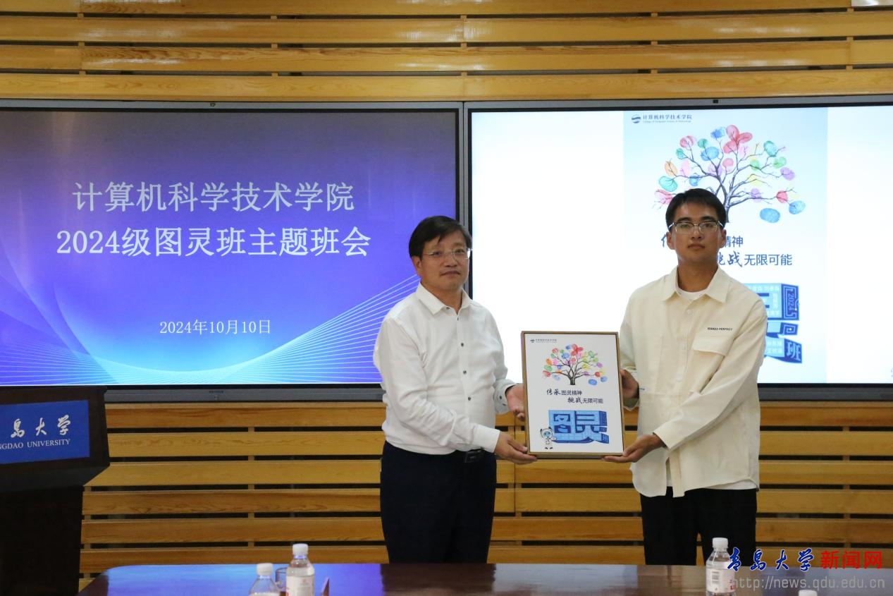 新闻网讯 10月10日下午,校长魏志强在博知楼510会议室参加计算机科学技术学院2024级图灵班“传承图灵精神,挑战无限可能”主题班会,并以“AI3.0:类人智慧与创新未来”为题进行授课,主题班会由计算机科学技术学院党委书记潘秋鸿主持。