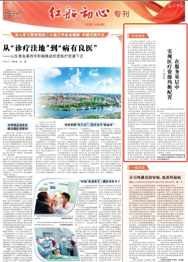 文章指出:民为邦本,本固邦宁。党的二十届三中全会把深化医药卫生体制改革作为进一步全面深化改革、推进中国式现代化的一项重要任务予以部署。深化医药卫生体制改革,是健全保障和改善民生制度体系的重要内容,要以习近平新时代中国特色社会主义思想为指导,锚定基层重点、狠抓改革推动、构建协同机制、坚持公益导向,在服务基层中实现医疗资源均衡配置,为健康中国建设提供有力支撑。