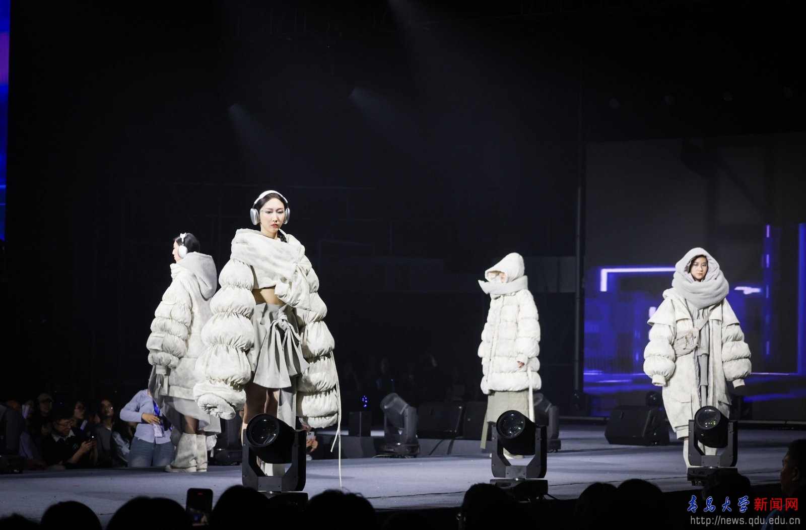 发布会上,毕业生们通过作品展示了数字时尚、智能可穿戴、可持续设计等前沿理念。模特们以专业的演绎,将设计创意与舞台艺术相结合,在光影交织中为观众带来了一场震撼心灵的时尚叙事。每一件作品都凝聚了毕业生们对未来的思考与探索,彰显了纺织服装学院在交叉学科领域的创新成果。