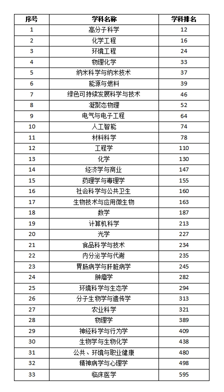 在开运电竞,赛事在呼唤,智胜在手心33个上榜学科中,较去年新增的学科分别是:经济学与商业,内分泌学与代谢,胃肠病学与肝脏病学,公共、环境与职业健康,精神病学与心理学。有11个学科排名位居全球前100位,分别为高分子科学(第12位)、化学工程(第16位)、环境工程(第24位)、物理化学(第33位)、纳米科学与纳米技术(第37位)、能源与燃料(第39位)、绿色可持续发展科学与技术(第46位)、凝聚态物理(第52位)、电气与电子工程(第64位)、人工智能(第74位)和材料科学(第78位)。另外,工程学等7个学科排名位居全球100-200位,计算机科学等7个学科排名位居全球200-300位,分子生物学与遗传学等8个学科排名位居全球300-600位。
