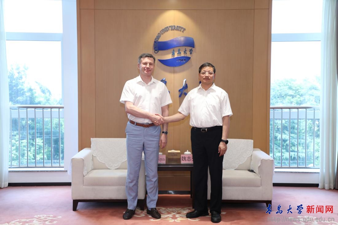 新闻网讯 7月4日上午,校长魏志强在会议中心接待室会见了白俄罗斯国立大学校长安德烈·卡罗里一行并座谈。安德烈·卡罗里此行是受邀为我校承办的“青岛市名师培养工程”授课。