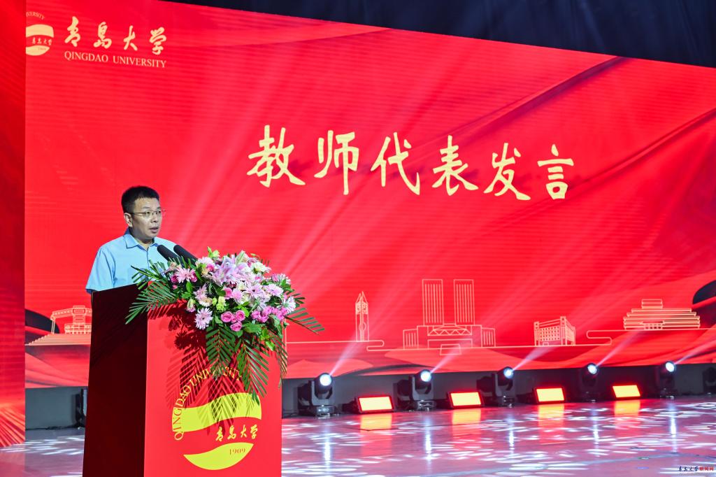 公共卫生学院于典科老师作为受表彰教师代表发言,分享了个人成长经历和教书育人心得体会。