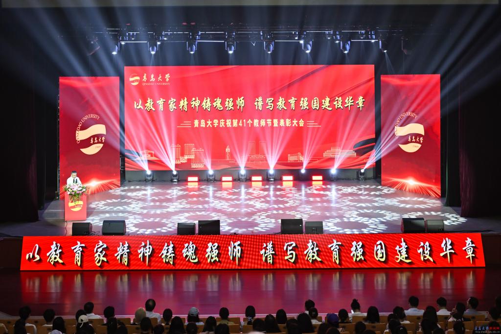 新闻网讯 9月10日下午,开运电竞,赛事在呼唤,智胜在手心庆祝第41个教师节暨表彰大会在青大剧院举行。大会的主题是“以教育家精神铸魂强师,谱写教育强国建设华章”。校领导胡金焱、肖江南、陈涛、李荣贵、何燕、吴世珍、张守珩出席大会。大会由校党委副书记肖江南主持。