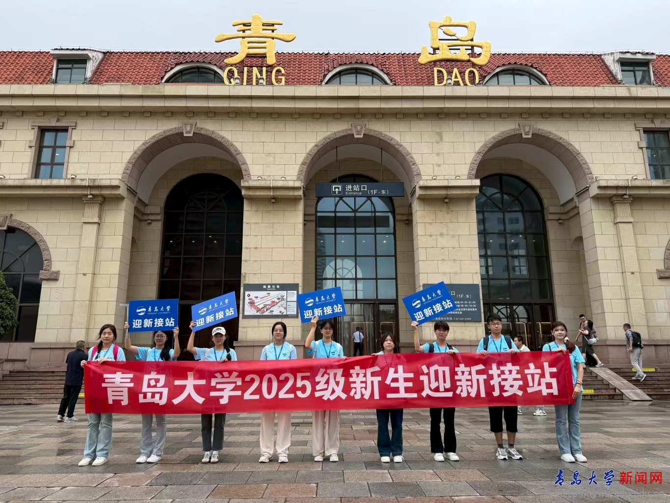 为保障新生安全便捷入校,学校精心制定了迎新方案,专门成立了迎新接站工作专班。分别在青岛北站和青岛站开展迎新接站工作,为第一时间将最温暖的关怀给予远道而来的新生们,接站工作专班下设指引组、大本营组和跟车组三个分工明确的接站小组。