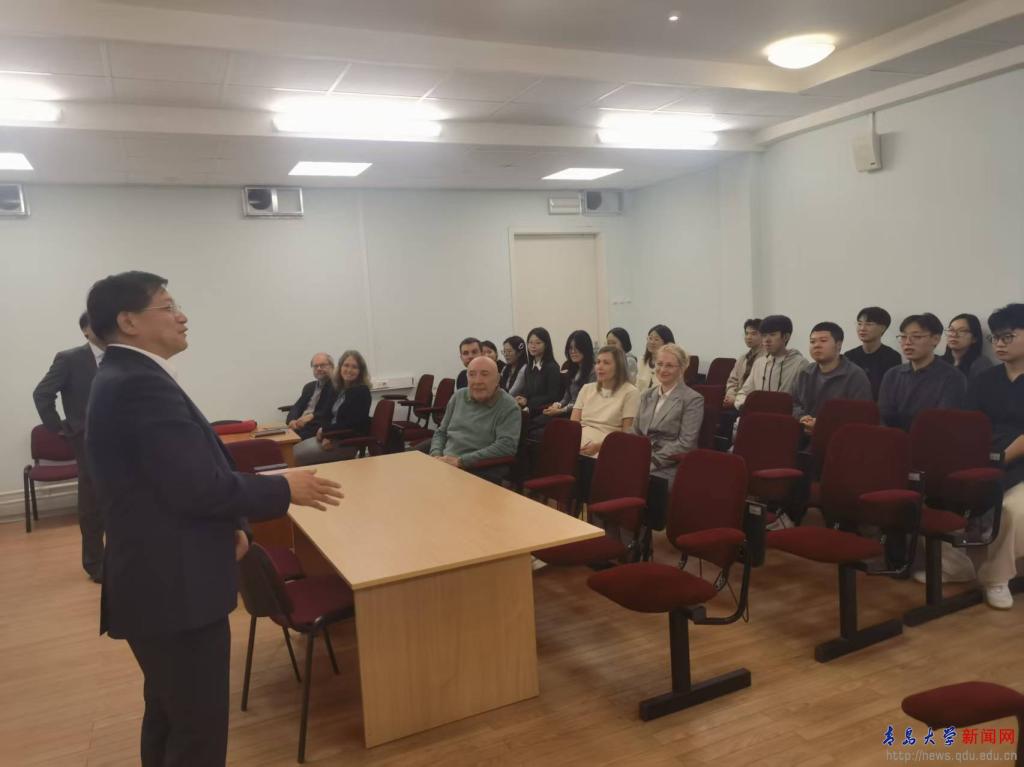 随后,代表团访问了圣彼得堡大学分校。魏志强一行与俄罗斯著名数学家、应用数学与控制过程系主任莱昂·彼得罗相教授及青年教师进行了座谈,并就工业应用数学与人工智能领域开展师生交流以及科研合作具体措施交换了意见。座谈后,魏志强看望了我校数学与统计学院正在圣彼得堡大学国家公派留学的38名博士和硕士研究生,他勉励同学们要“努力拼搏、立志高远,做有梦想、有奋斗、有情怀的时代青年”。