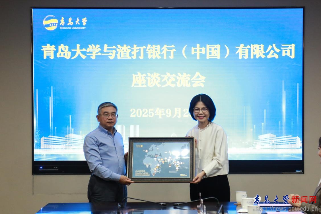 胡金焱代表学校对鲁静一行的到来表示热烈欢迎,对渣打银行积极融入“一带一路”建设、服务区域经济社会发展以及构建国际化网络等运营理念,给予高度评价,并详细介绍了学校的发展历程、办学优势和发展情况。胡金焱指出,学校办学历史悠久,学科门类齐全,规模体量大,近年来发展迅速,综合实力实现新跃升。学校坚持“立足青岛、服务青岛、融入青岛,在服务山东全面求强中谋发展,在国家双一流建设中求突破”的发展理念,聚力转型发展、创新发展、突破发展,突出“医工交叉、特色鲜明,文理支撑、综合厚重”的办学特色,加快推进高水平综合性研究型大学建设。希望双方能够优势互补、资源共享,开展全方位、深层次的交流合作,共同服务区域经济社会发展。