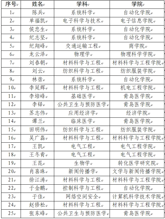 本次上榜共计6388人,来自547所高校、企业及科研机构,覆盖了10个教育部学科领域中的83门一级学科。我校25名学者入选本年度榜单。