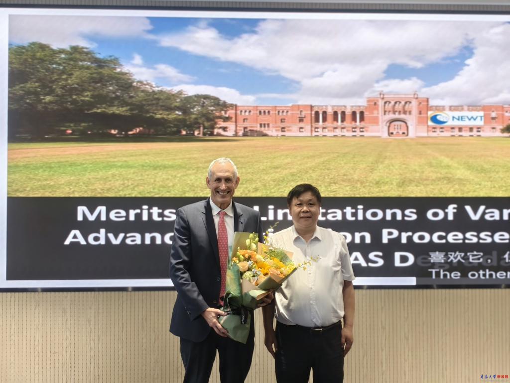 新闻网讯 5月26日上午,国际环境领域著名专家、美国工程院和科学院院士、中国工程院外籍院士Pedro J. Alvarez教授受邀来访我校并作"Merits and Limitations of Various Advanced Oxidation Processes for PFAS Degradation"专题讲座。副校长李荣贵出席报告会并致辞。报告会由环境与地理科学学院修宗明教授主持,学院党委书记张作祥、院长佘希林等共计200余名师生代表参加。