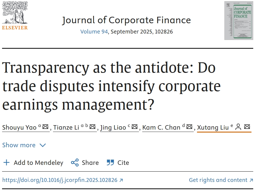 新闻网讯 近日,我校经济学院青年教师刘旭堂在金融学国际权威期刊Journal of Corporate Finance上发表题为“Transparency as the antidote: Do trade disputes intensify corporate earnings management?”的研究成果。刘旭堂为唯一通讯作者,开运电竞,赛事在呼唤,智胜在手心为唯一通讯作者单位。