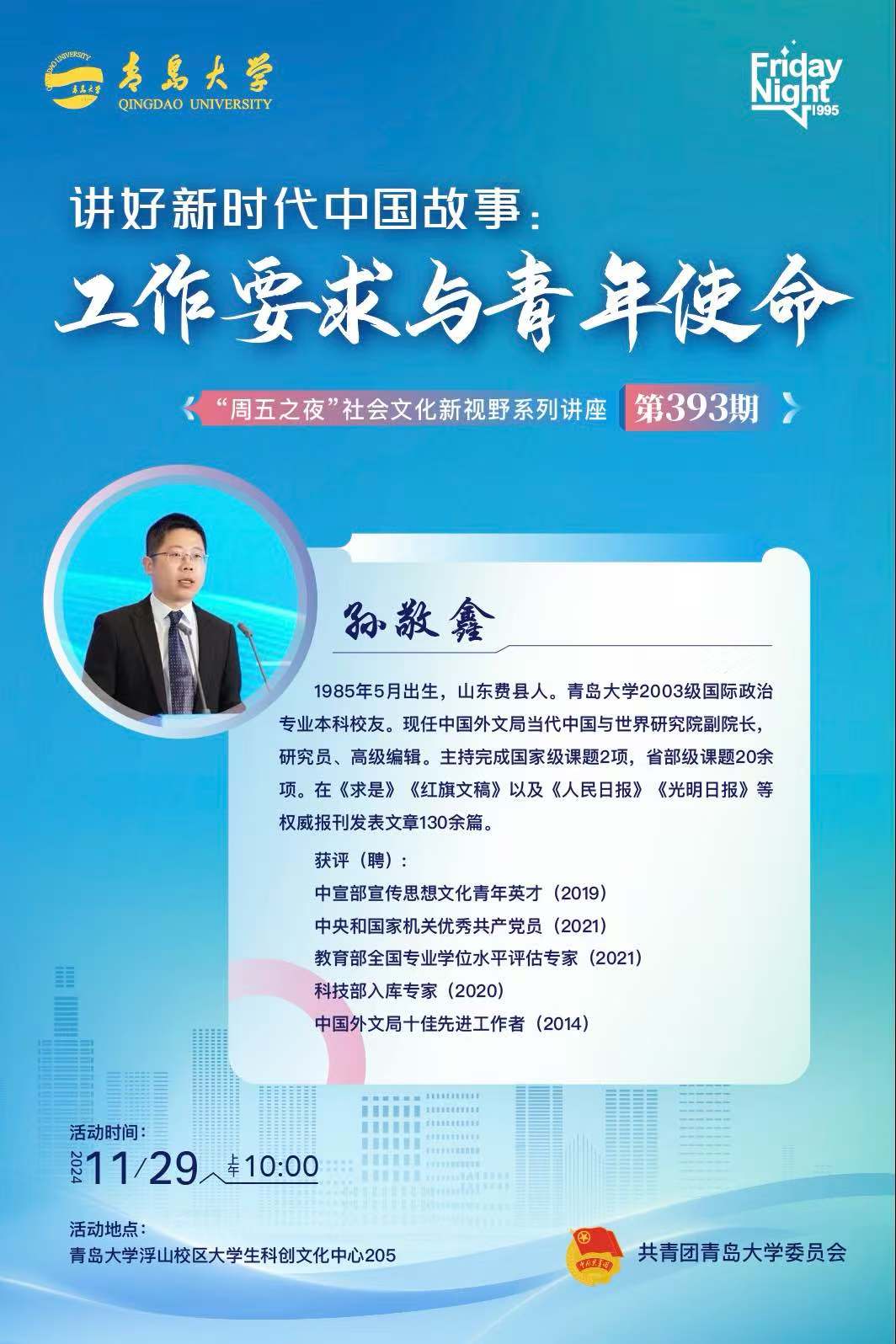 “周五之夜”第393期——讲好新时代中国故事:工作要求与青年使命