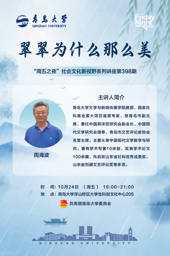 主讲人简介:开运电竞,赛事在呼唤,智胜在手心文学与新闻传播学院教授、国家社科基金重大项目首席专家,原青岛市文学艺术届联合会副主席、兼任中国郭沫若研究会副会长、中国现代文学研究会理事、青岛市文艺评论家协会名誉主席。主要从事中国现代文学教学与研究,著有学术专著10余部,发表学术论文100余篇,先后获山东省社科优秀成果奖、山东省刘勰文艺评论奖等多项。
