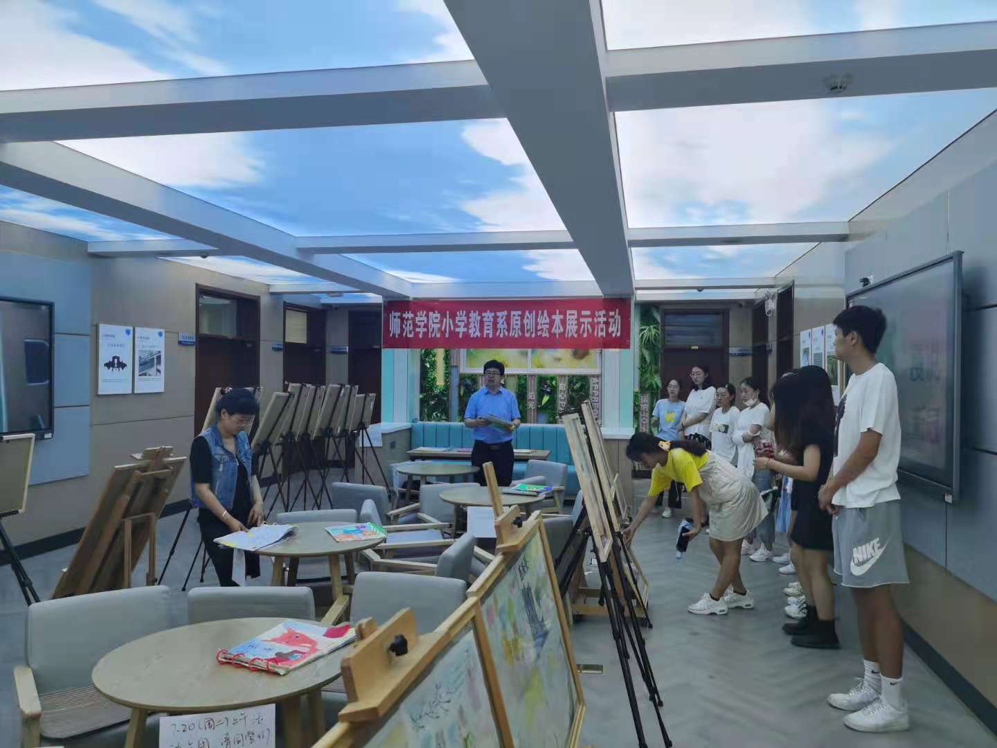 新闻网讯 7月20日,师范学院小学教育系“原创绘本展示活动”在德辉楼三楼大厅举行。以发展学生专业素养、拓展学生能力为宗旨,以提高学生人文情怀、创新精神和审美情趣为目标,在郭文老师的指导下,同学们精心创作并展示了高质量的原创绘本作品。