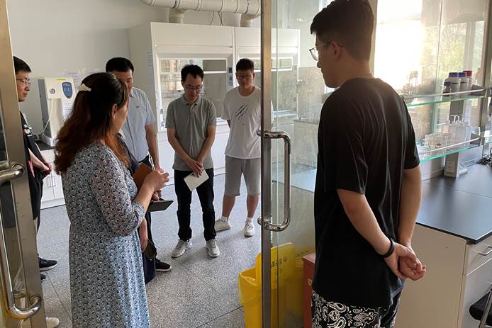 实验室副主任郝晓丽带领各课题组安全联络员老师逐一检查了国家重点实验室楼宇内18个课题组和平台实验室的安全卫生情况,重点检查了实验室的水电气安全、仪器设备安全、日常卫生、安全日巡查落实情况、管控类危化品保管及使用记录等,对存在的隐患现场提出整改意见。