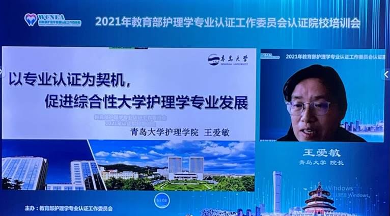 我校作为2020年通过专业认证的三所学校之一,王爱敏院长在会上做了“以专业认证为契机—促进综合性大学护理学专业发展”的报告,剖析了目前综合性大学中护理学专业发展的现状、问题、机遇和挑战以及今后的发展方向,为更好地服务健康中国战略培养国家需要的高水平护理人才提供了很好的探索思路。王爱敏认为专业认证是护理在综合性大学发展的助推剂,也是推动专业建设持续改进提升的有效方式,学院日后将以专业认证顺利通过为契机,抓住机遇,加强内涵建设,不断提高人才培养质量。