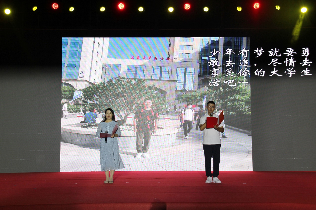 典礼开始前,在场师生一同观看了医学部专题制作的宣传片和迎新视频。回顾和学习了全体青医人在逆境中谋发展、于艰难中创事业的豪情壮志,深刻领悟了“自强不息、克难奋进、求真务实、开拓创新”的青医精神和“学风优良、功底扎实、治学严谨、管理严格”的治学传统。