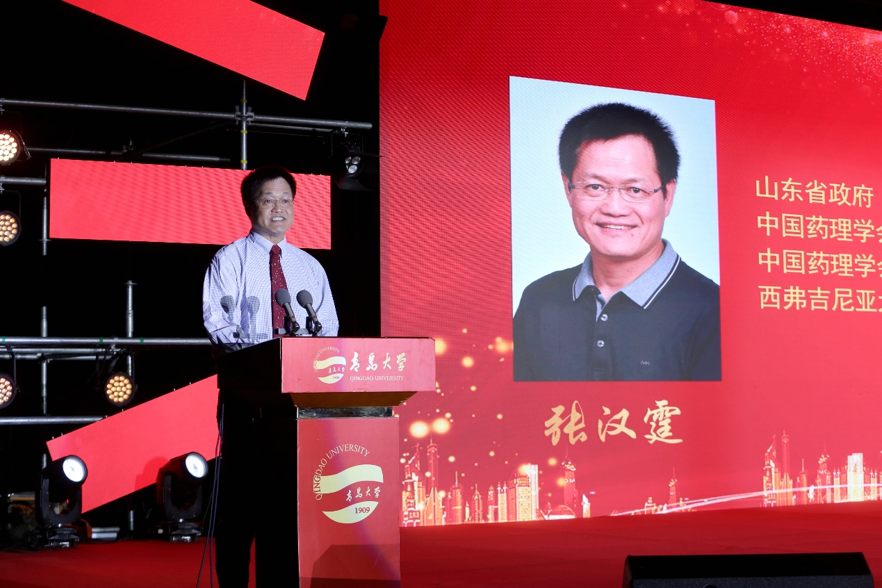 山东省政府“泰山学者”海外特聘教授、药学院首席教授张汉霆作为教师代表发言。他就大学生活寄语新同学:一是坚定理想信念,做到志存高远、勇于挑战,树立起献身医学事业的远大抱负;二是转变学习态度,做好自我管理,脚踏实地,刻苦学习,培养学术专长,探索未知;三是做到团结协作,乐于助人,尤其是跨专业、跨领域的合作;四是以青大医学人的豪情和坚韧,以勤奋和才智,谱写美好成功的人生乐章。