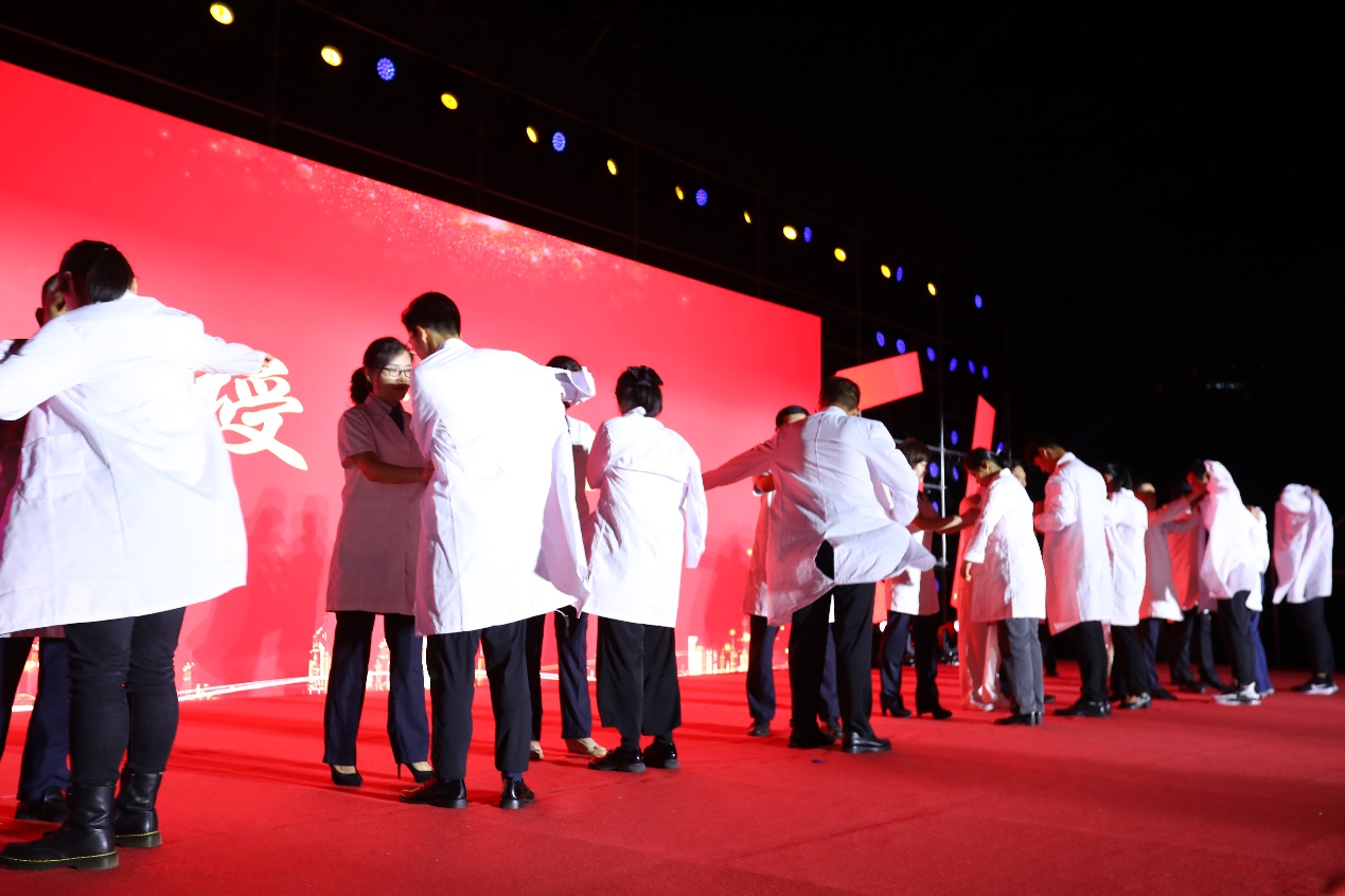 在授袍仪式上,李永春等10位知名专家和优秀教师为新生代表授予象征救死扶伤和济世仁心的白衣,传递医者的责任与担当,激励新生坚守选择医学的初心,以人民健康为己任,牢记医学的责任和使命,奋力拼搏,做出自己的一份担当。
