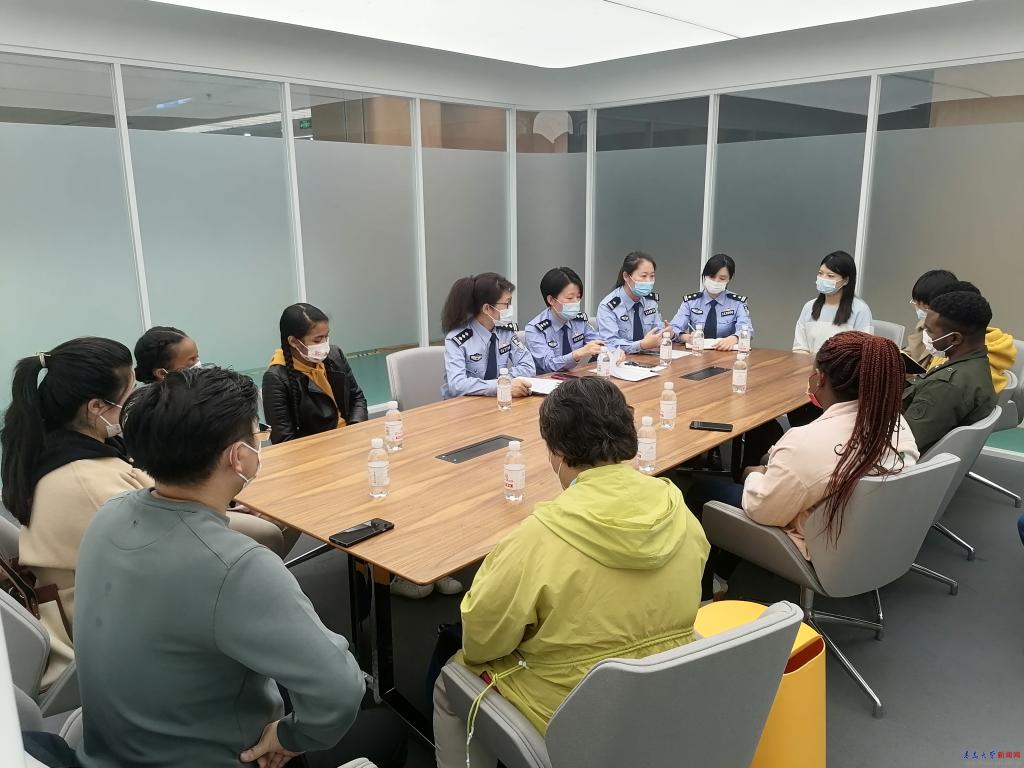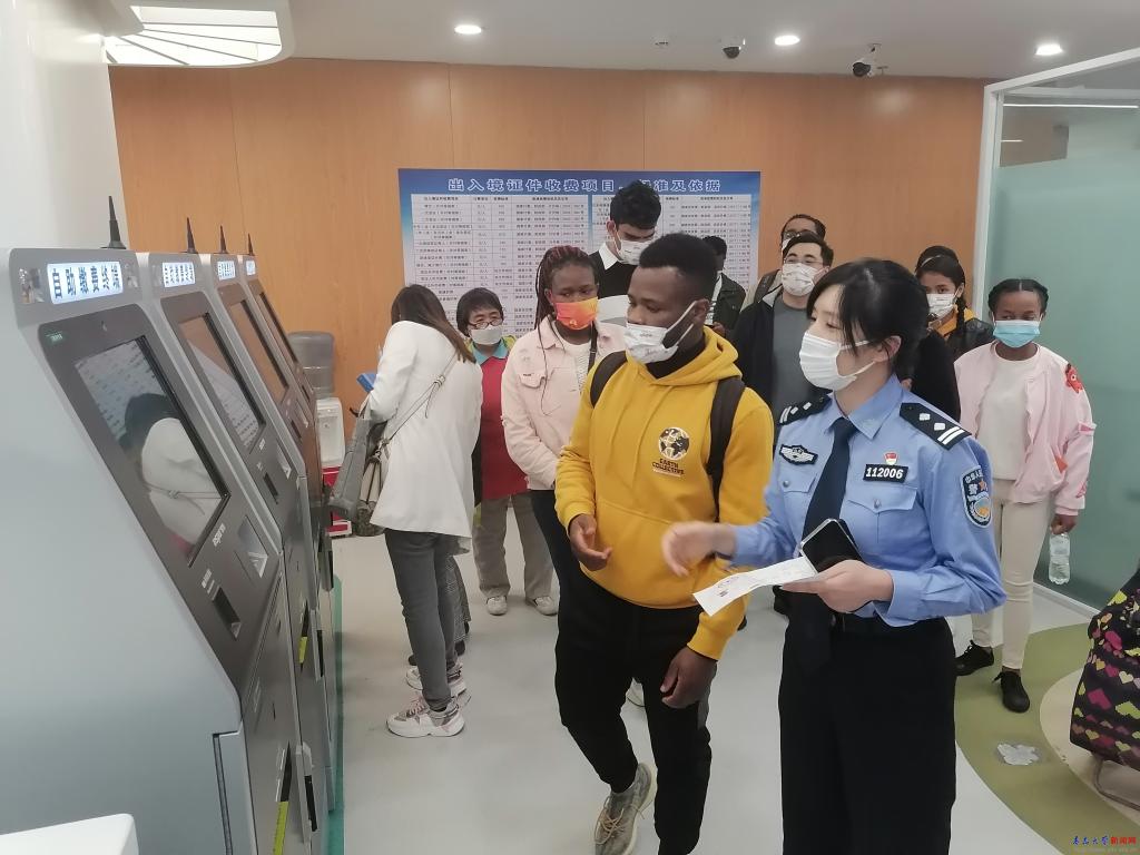 师生们在丁晓静警官的带领下,全过程详细了解了境外人员申请签证中的自助申办、号码申领、窗口办理及服务缴费的全流程,感受贴心零距离服务。在中国公民业务办理区,详细了解了身份证、车管、中国公民护照申领等相关业务的办理流程,参观结束后,师生一行来到会议室,与出入境管理局签证一科及审批科相关领导亲切座谈,警民就师生所关注的关于境外人员及中国公民出入境业务进行了沟通交流,并进行了答疑活动。出入境管理局签证一科韩立君科长为3名刚刚获得新学生居留许可的留学生现场颁发了签证。