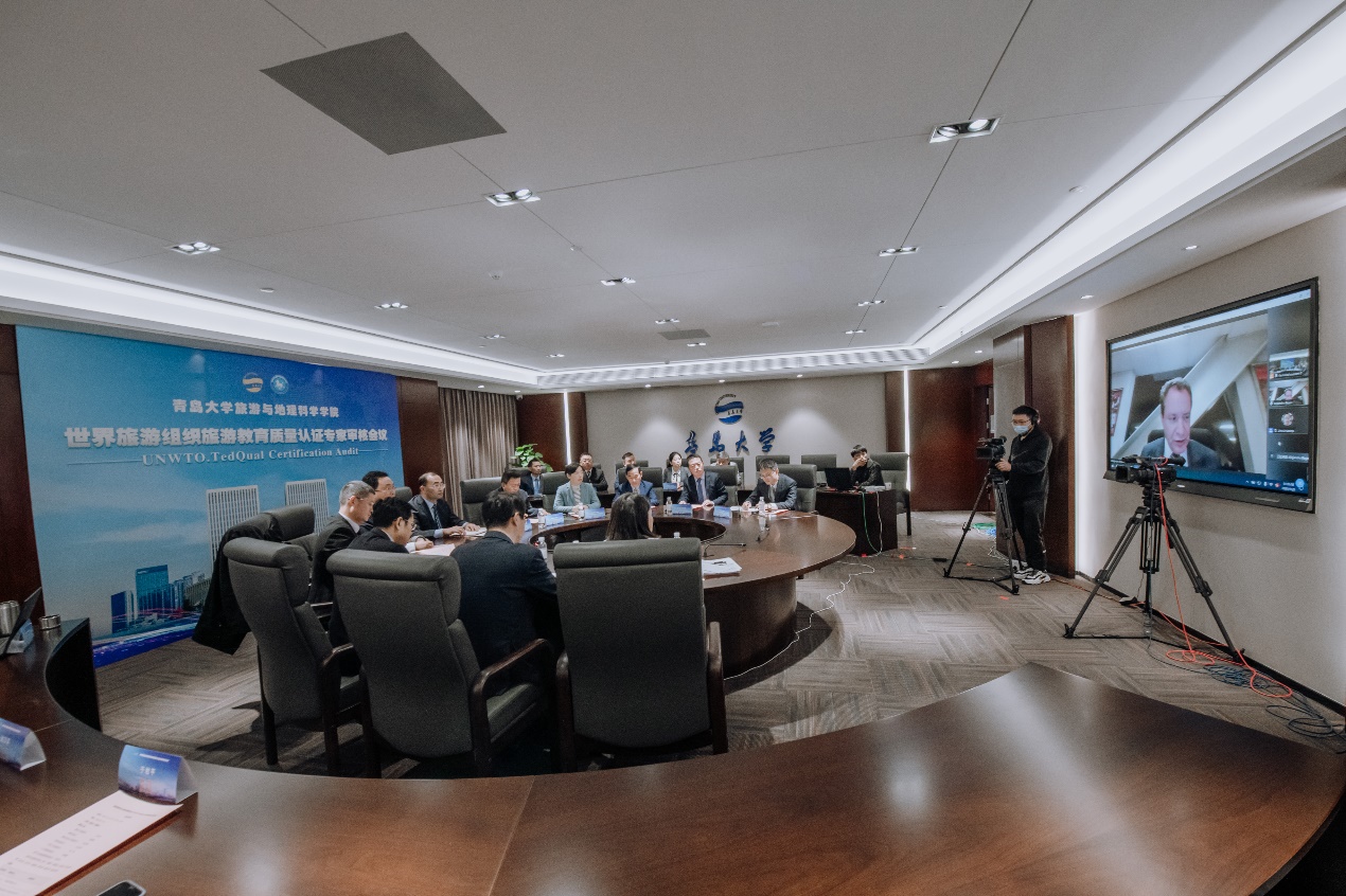 Dr.Reyes总结了6天与认证工作小组的报告与支撑材料论证,云游览校史馆、学生事务大厅、“非遗在青大”文化空间、青大印象休闲茶餐厅、旅游目的地管理实验室等办学设施,线上访谈学校职能部门、教师、学生、校友、公共部门和私营部门代表等审核情况。他认为,结合自评报告、支撑材料论证以及访谈情况,我校旅游管理专业和酒店管理专业的认证准备工作扎实、办学目标明确、办学特色鲜明、办学条件与设施优越、社会声誉和认可度较高,同时也指出了两个专业的不足,并提出了改进的建议。他表示,根据认证流程,接下来将尽快撰写形成一份审核报告提交联合国世界旅游组织旅游教育质量认证委员会审议,最终的认证结果大约在四至六个月后由认证委员会作出。