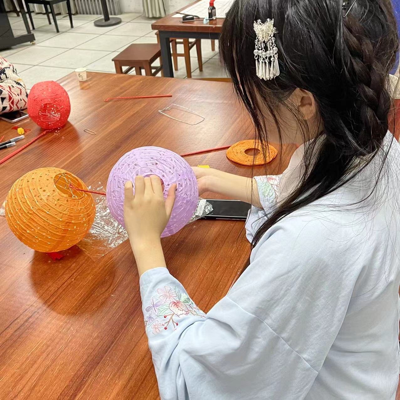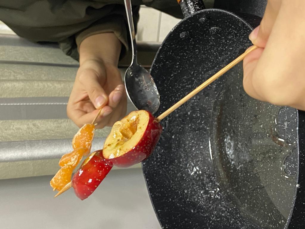在这冬日,如此惬意地头戴发簪、身佩红结,剪个“春”字装裱,画个团扇掩面,体验把熬糖时的喜悦,摁图案时的爽快,扣图案时的小心翼翼,一起感受汉字的博大精深,传统游戏的趣味。有点饿了,就来一口酸甜的冰糖橘子、椪糖,最后再制作一个灯笼提走。