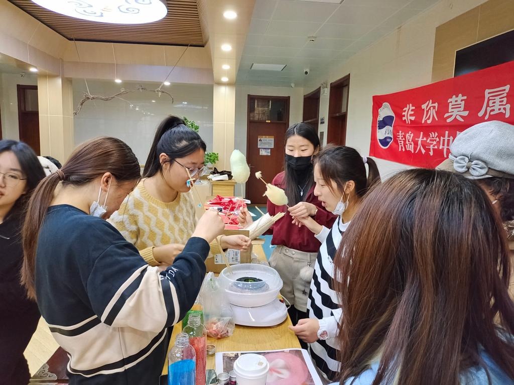 体验活动丰富多彩,令人目不暇接。同学们既可以静心体验传统意韵的书法,抒情达意的扇面画,独具艺术风格的手工编织、剪纸、灯笼,传统精美的发簪,又可以大饱口福,尝一尝造型可爱、甜蜜香甜的糖画、椪糖,绕一绕五颜六色的棉花糖,品一品清香怡人的金骏眉、铁观音,进而试一试富有挑战性的投壶,猜一猜有趣烧脑的灯谜。