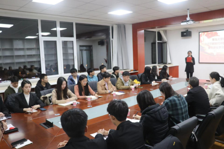 新闻网讯 12月3日晚18:30,纺织服装学院习近平新时代中国特色社会主义思想研究会成立大会暨十九届六中全会精神学习辅导会在睿思楼五楼会议室举行。马克思主义学院曲新英教授受聘为学院新时代中国特色社会主义思想研究会指导教师,并作党的十九届六中全会精神学习辅导报告。