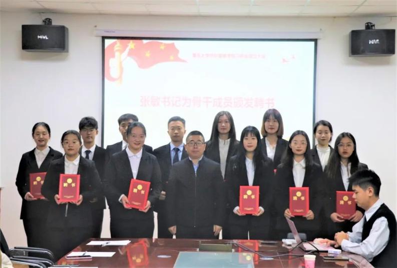 学院党委副书记张敏为曲新英教授颁发了证书,为习研会骨干成员颁发了聘书。