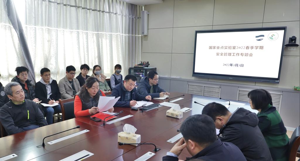 在实验室安全工作专题会上,郝晓丽首先对安全检查情况进行了总结,对发现的个别课题组存在安全日巡查记录不完备等安全隐患提出了整改要求。接着,布置了国家重点实验室春季学期安全工作要点,一是要进一步提高安全意识和责任意识,安全第一、警钟长鸣;二是要严格遵守学校疫情防控要求,严格来访人员审批和登记;三是要落实“三到位”,确保实验室安全,即师生安全教育到位、安全管理到位和学生管理到位。叶万能老师结合学校、国家重点实验室相关管理办法,就如何从实验室安全教育、安全管理和学生管理三方面落实好实验室安全工作进行了详细说明。