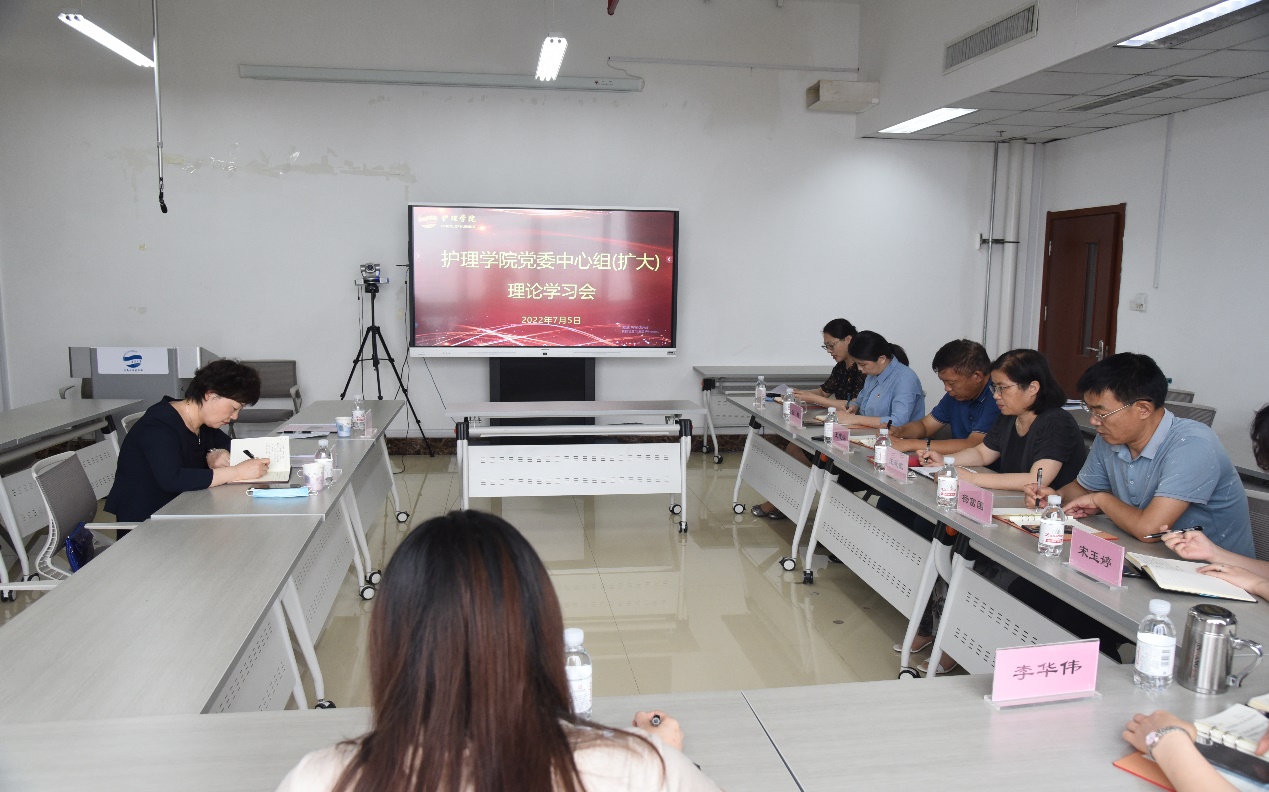 新闻网讯 7月5日上午,护理学院党委中心组(扩大)理论学习会在浩园医学综合楼1501室举行。校党委常委、副校长、医学部部长姜宏全程巡听督学了学习会。学院党委中心组成员、各党支部书记参加学习,学院党委书记王成海主持会议。