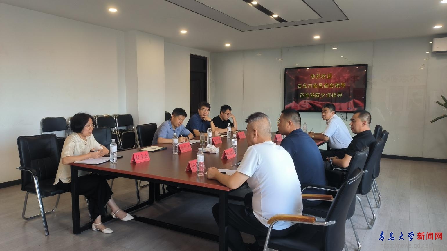 佘希林代表学院对青岛市临邑商会的来访表示欢迎,并重点围绕学院专业设置、科研团队、学科研究方向介绍了学院基本情况。青岛市临邑商会监事长郑京卫对学院取得的各项成绩给予了高度评价,他介绍了商会基本情况、发展历程及平台搭建情况,希望与学院建立长期合作关系。青岛市临邑商会秘书长王孝国表示,商会将会秉承“服务政府、服务社会”的理念,充分发挥桥梁纽带作用,为推进高校成果转化、促进校地合作、推动经济发展做贡献。