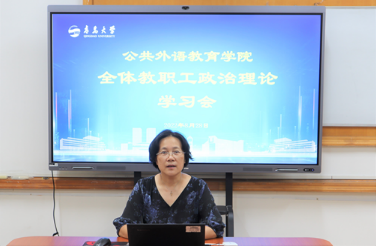 新闻网讯 8月28日,公共外语教育学院召开了新学期全体教职工政治理论学习会,学习《习近平给外文出版社的外国专家的回信》,骨干教师讲党课。学院党政领导班子和全体教职工参加学习,会议由学院党委书记刘海荣主持。
