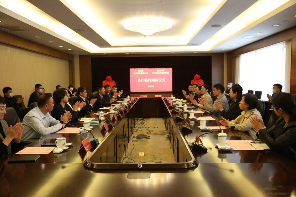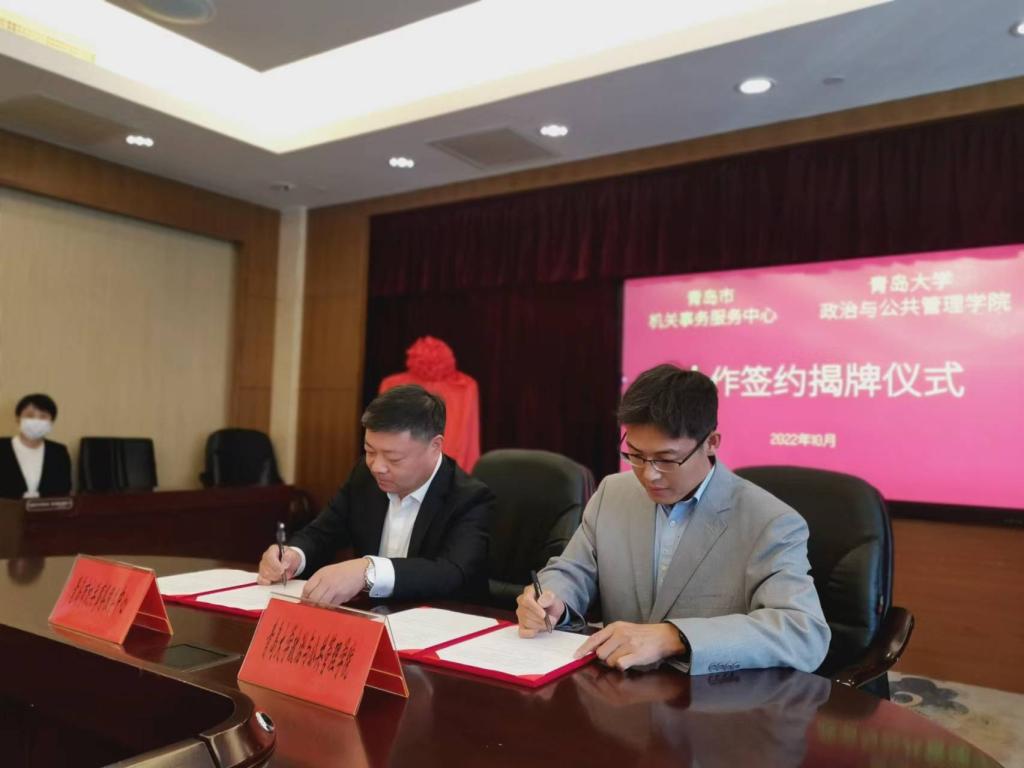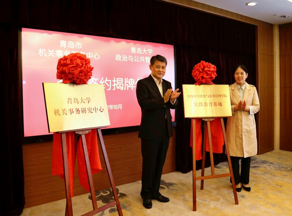 青岛市委副秘书长,市机关事务服务中心党组书记、主任张意出席仪式并致辞。市机关事务服务中心副主任刘禄福、周先胜,政治与公共管理学院党委书记隋晓玲、院长陈洪连等有关领导和教师代表参加了签约揭牌仪式。会议由市机关事务服务中心副巡视员傅希璟主持。