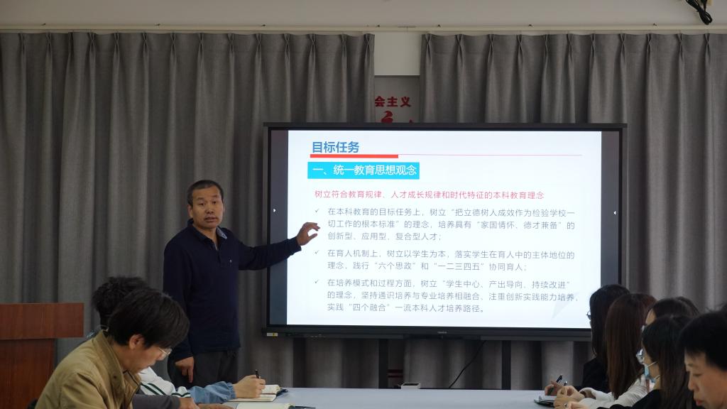 副院长王德昌对2022版专业认证指南进行了详细解读。各系部主任从考研指导、班主任与学业导师制、系统设计教研活动、产教协同育人等方面总结了本系部前期的主要工作,并结合教育思想大讨论暨迎接新一轮本科教育教学审核评会议的主要内容,聚焦立德树人根本任务,进行了交流研讨,对本系部的教育教学改革和建设提出了中肯意见与建议。
