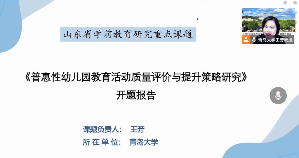课题负责人王芳代表课题组做《普惠性幼儿园教育活动质量评价与提升策略研究》和学前教育基地建设项目《幼儿园游戏案例“做-研-写-用”四位一体研修模式的构建与应用》的报告。