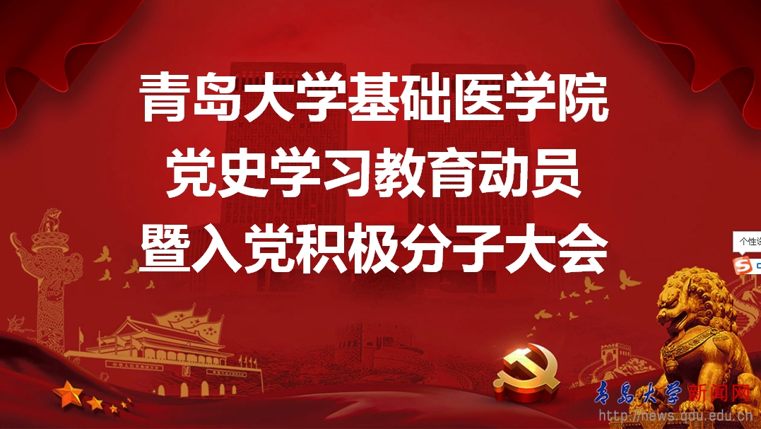新闻网讯 3月19日中午,基础医学院在医学教育综合楼报告厅召开党史学习教育动员暨入党积极分子会议。会议采用线上线下同时进行的方式。基础医学院党委副书记刘学、辅导员谭雪梅及全体入党积极分子参加会议。