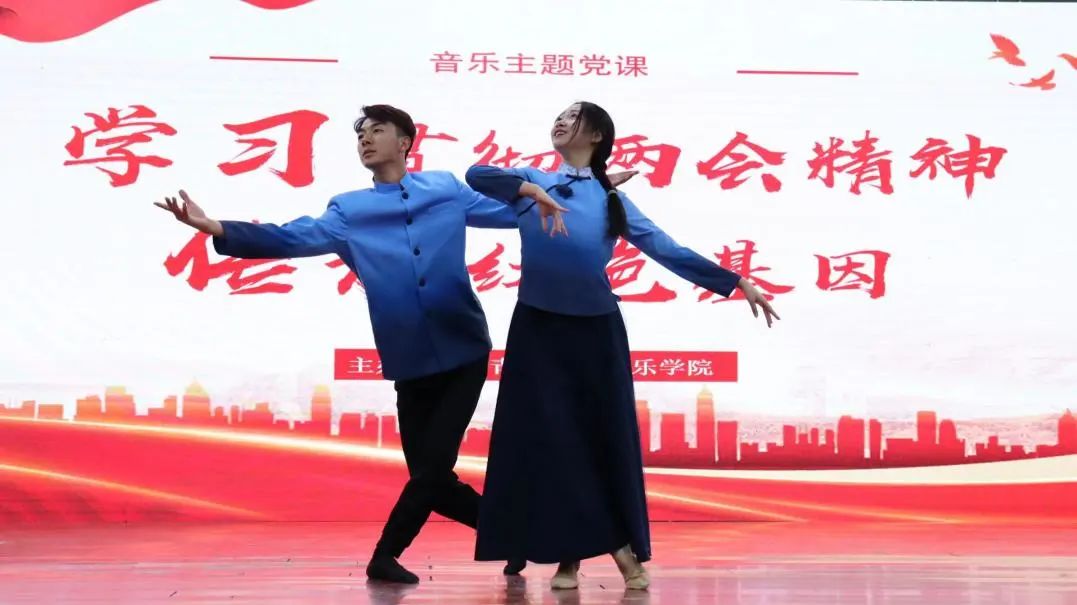 新闻网讯 3月15日晚,音乐学院研究生党支部、本科生党支部在德雅楼103小剧场联合举办以“学习贯彻两会精神 传承红色基因”为主题的音乐党课,学院党委副书记孙建华、研究生党支部书记迟晓波、本科生党支部书记朴博文、学院团委书记温丽以及全体学生党员参加音乐党课。