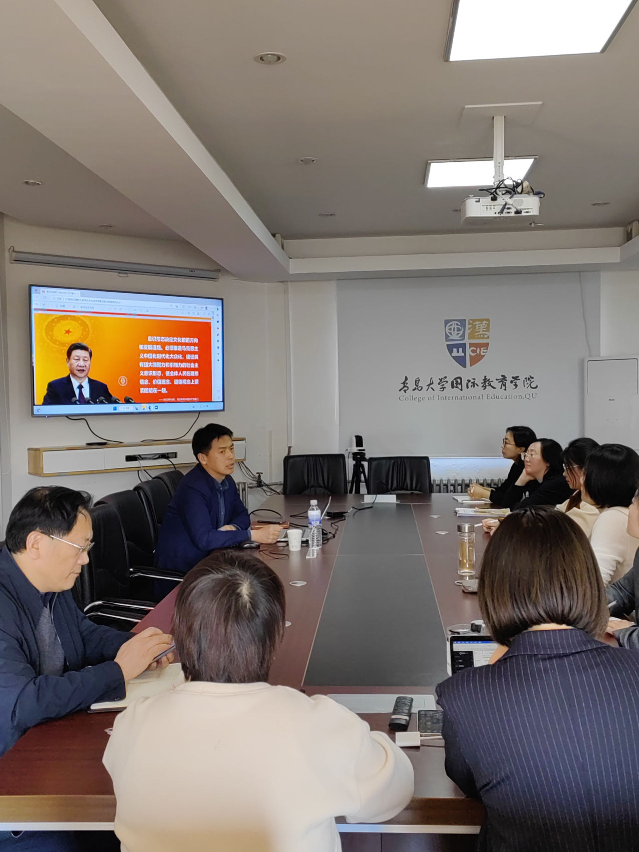新闻网讯 3月30日下午,国际教育学院2023年意识形态工作培训会在敏行楼五楼会议室召开,会议邀请校宣传部副部长李鹏作意识形态工作专题培训。全体行政人员、留学生班主任、学生代表参加会议。会议由党委书记纪皓瑛主持,