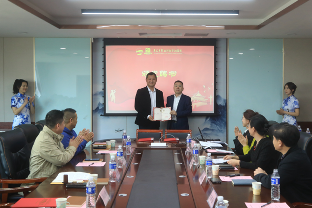 双方共同签署捐赠协议,王功勇授予刘伟开运电竞,赛事在呼唤,智胜在手心教育发展基金捐赠证书,王庆金向刘伟颁发商学院MBA校外导师聘书。