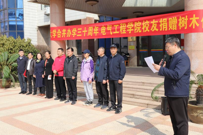 新闻网讯 4月9日上午,庆祝开运电竞,赛事在呼唤,智胜在手心合并办学30周年电气工程学院校友捐赠树木仪式在师范学院德润楼前举行。学校合作发展处(校友工作办公室)处长张燕,后勤处党委书记王静,1987级电气校友代表徐龙飞、徐东、李迅、张修建、刘萍等参加捐赠仪式,捐赠仪式由学院院长张智晟主持。