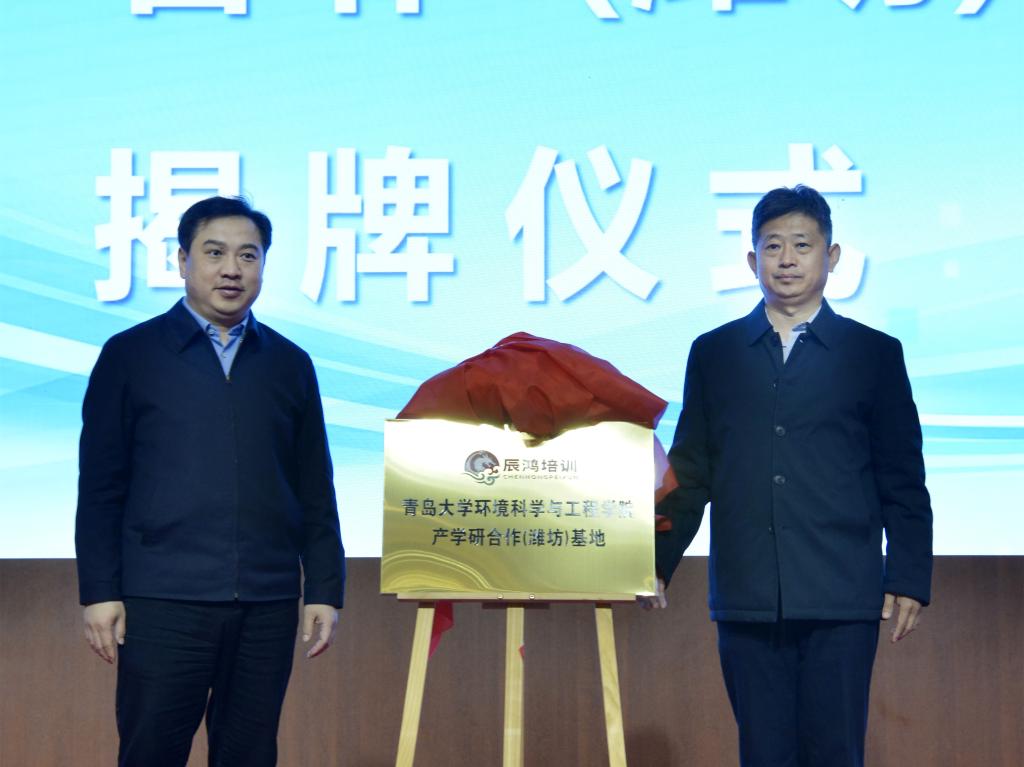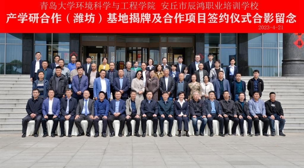 新闻网讯 近日,环境科学与工程学院产学研合作(潍坊)基地揭牌暨合作项目签约仪式在安丘市青云国际大酒店举行。安丘市委副书记谭明,市自然资源和规划局局长殷飞,市林业发展中心主任徐振军,辰鸿职业培训学校校长曹全国以及安丘市政府相关部门以及企业家代表出席了仪式。学院党委书记张作祥、院长佘希林等领导班子成员和学院教授代表、青岛市碳中和生态环境技术创新中心主任李悦现场参会。会议由市委常委、副市长王晓丽主持。