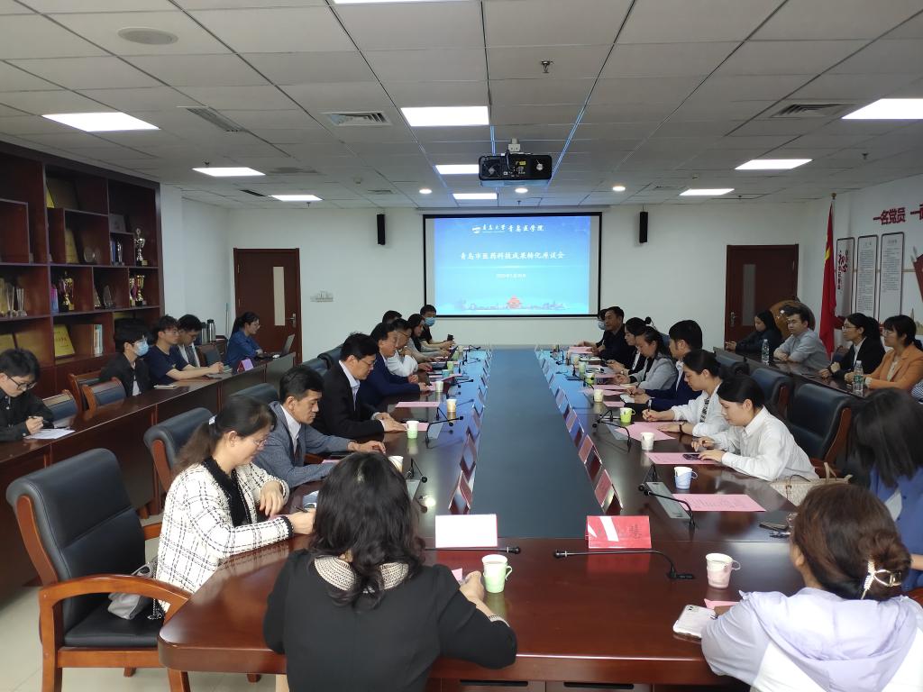 新闻网讯 5月18日下午,青岛市医药科技成果转化交流会在浩园医学教育综合楼会议室召开,本次会议由青岛市科技局牵头、医学部组织。青岛市科技局成果转化与创新孵化处副处长郑雯,科技局农业与社会发展处主任段继莲,中孵高科副总裁施平,启迪控股东北亚总部总裁助理刘立新,医学部常务副部长宋扬以及医学部其他党政领导和专家,各附属医院、研究院的科研管理办公室负责人,2023年双创项目负责人参加交流会。
