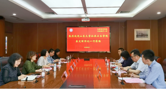 姜文丽对我校公共卫生学院近年来的快速发展表示衷心祝贺和赞赏,并介绍了山东大学公共卫生学院的整体情况。大家聚焦党建与业务工作深度融合、三全育人与协同育人、高层次人才引育、科研组织和实验室建设等重点工作,进行了深入交流研讨,希望双方今后增加交流、互通有无,共同推进公共卫生事业的发展。