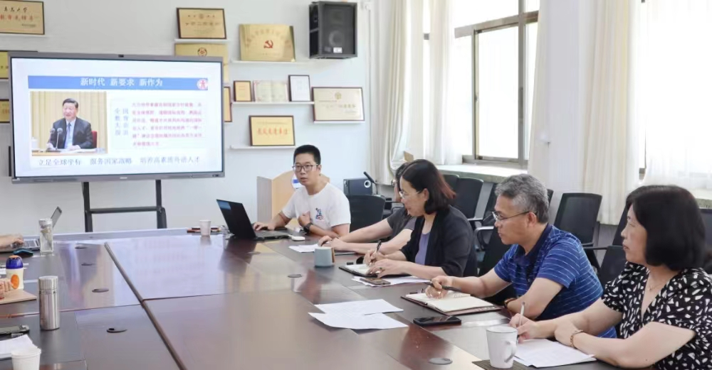 新闻网讯 7月5日下午,公共外语教育学院党委理论学习中心组举行扩大学习会,开展“在以中国式现代化全面推进中华民族伟大复兴新征程上展现青大担当”专题学习。会议邀请校教务处教学研究办公室主任刘洋做培训报告,院党政领导、党委委员、党支部书记、教研室主任、课程负责人等参加学习。院党委书记刘海荣主持会议。