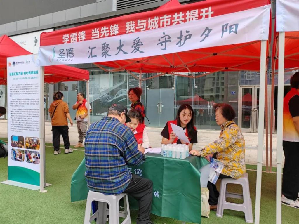 公益活动现场来自圣德医养康复集团、华夏眼科及优诺口腔的医护人员为老年人们进行了血压血糖测量、内科及老年病诊疗、眼疾筛查等义诊项目,医护人员以及学生志愿者的志愿服务受到了老年群体的热烈欢迎。