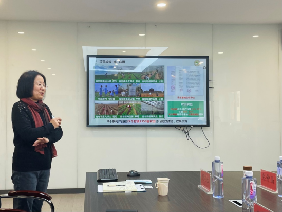项目负责人环境科学与工程学院颜冬云教授汇报了糖醇螯合系列有机液体肥技术,以案例形式展示了系列肥料的推广应用成果,并与政企两方就技术成熟度、产业化前景、合作方式等方面进行了深入探讨。