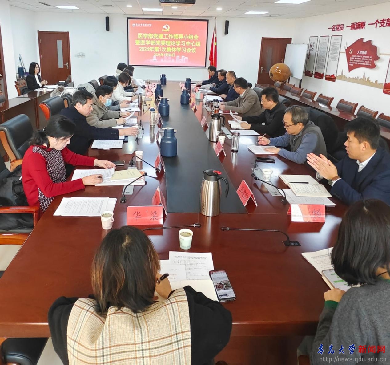 新闻网讯 1月26日上午,医学部党委在浩园医学教育综合楼215会议室召开党建工作领导小组会暨理论学习中心组(扩大)2024年第1次集体学习会议,深入学习习近平党建思想,研究谋划2024年党建工作。医学部党委书记蒋光峰主持会议并讲话,医学部党建工作领导小组成员,医学部党委理论学习中心组成员,各学院、附属医院党委副书记参加会议。
