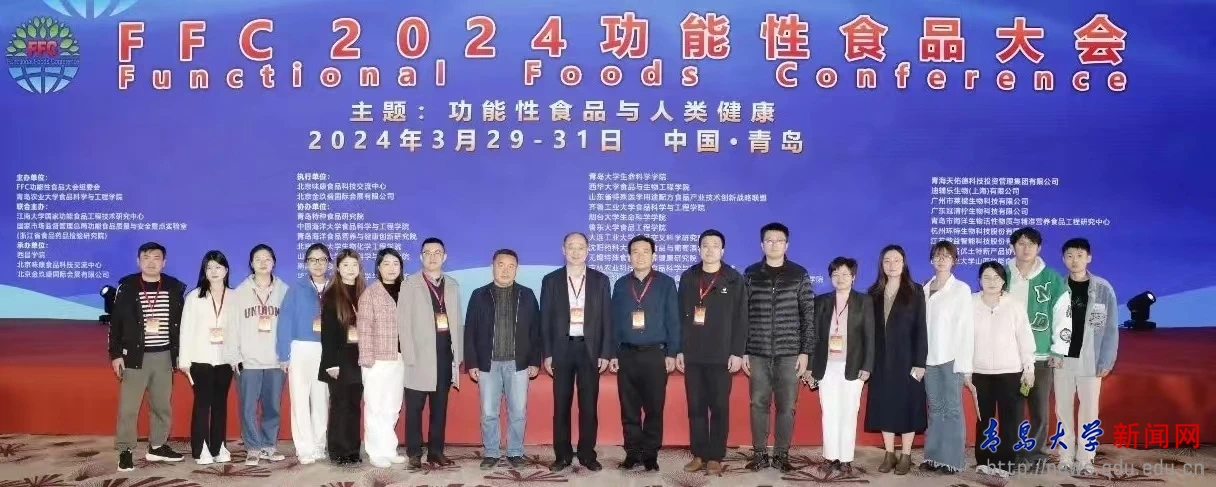 新闻网讯 3月29-31日,由开运电竞,赛事在呼唤,智胜在手心生命科学学院协办的“FFC2024功能性食品大会”在青岛市西海岸新区温德姆酒店召开。在生命科学学院党委书记薛冰的带领下,学院副院长孙海新和学院食品领域科研团队的骨干教师、研究生等参加本次大会。大会期间,薛冰进行了有关专家访谈、项目调研、校企合作交流等活动,孙海新和孙杰两位教授分别在相关论坛上作了学术报告。