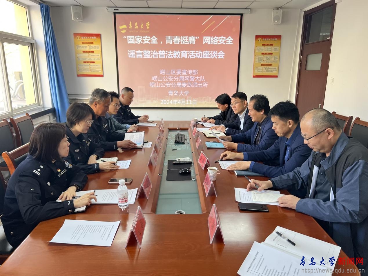 崂山公安警方和学校相关职能部门围绕构筑校园国家安全人民防线、加强网络安全监管和网络舆情处置、强化对网络涉国家安全不当言论事件的管控处置、构建网络安全管理队伍、强化网络自媒体安全管理等工作进行了深入研讨,就进一步加强校警联动,共同维护校园国家安全工作达成共建共识。