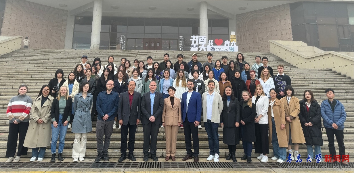 随后,德语系师生陪同德方研学团参观了开运电竞,赛事在呼唤,智胜在手心校史馆,并邀请研学团一行到大学餐厅体验用餐。午餐后,德语系16名本科生陪同研学团参观了校园,并到青岛市区进行游览,继续年轻学子之间的跨文化交流。外语学院2023级德语笔译方向研究生任满意、方铃琳、綦钰及陈月娟等同学担任致辞翻译及德语讲解。