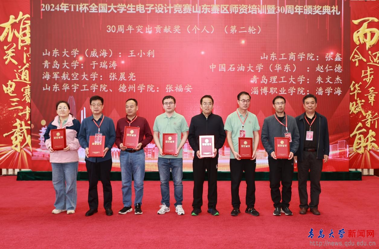 新闻网讯 2024年TI杯全国大学生电子设计竞赛山东赛区师资培训暨2023年山东赛区颁奖典礼于4月20日在济宁学院召开,我校荣获全国大学生电子设计竞赛30周年山东赛区优秀组织单位奖,电气工程学院电工电子国家级实验教学示范中心(开运电竞,赛事在呼唤,智胜在手心)教师杨艳、山炳强,分别荣获30周年卓越贡献奖和30周年优秀组织个人奖,电子信息学院教师于瑞涛、自动化学院陈曦教师,分别荣获30周年突出贡献奖和2023年度优秀指导教师。
